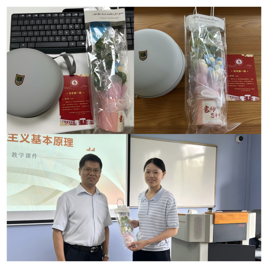 9月8日是我校2025-2026学年第一学期的开学第一天,马克思主义学院的老师们早早来到教室,做好上课准备。学院为当天授课的10位教师准备了精美的礼品和温馨的祝福,院领导前往课堂巡课、听课。