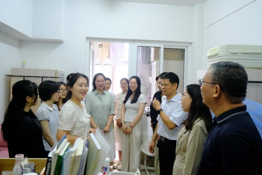 9月12日下午,学院党总支书记孙厚纯、院长巩茹敏、副院长周业勤、郭玉宇、陶林、研究生辅导员孙艳君和教师代表李清洪等前往研究生宿舍看望新生。院领导与同学们亲切交谈,了解入住情况和生活学习需求,并嘱咐同学们尽快转变角色,科学规划学业,保持良好生活习惯,并增强自我防护意识。