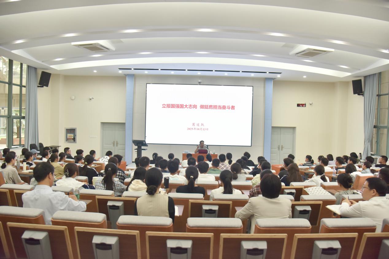 1013日下午,江苏省政协常委、教卫体委员会主任葛道凯到我校,为2025级口腔医学、眼视光医学专业学生讲授专题思政课。专题思政课由校党委副书记徐珊主持。