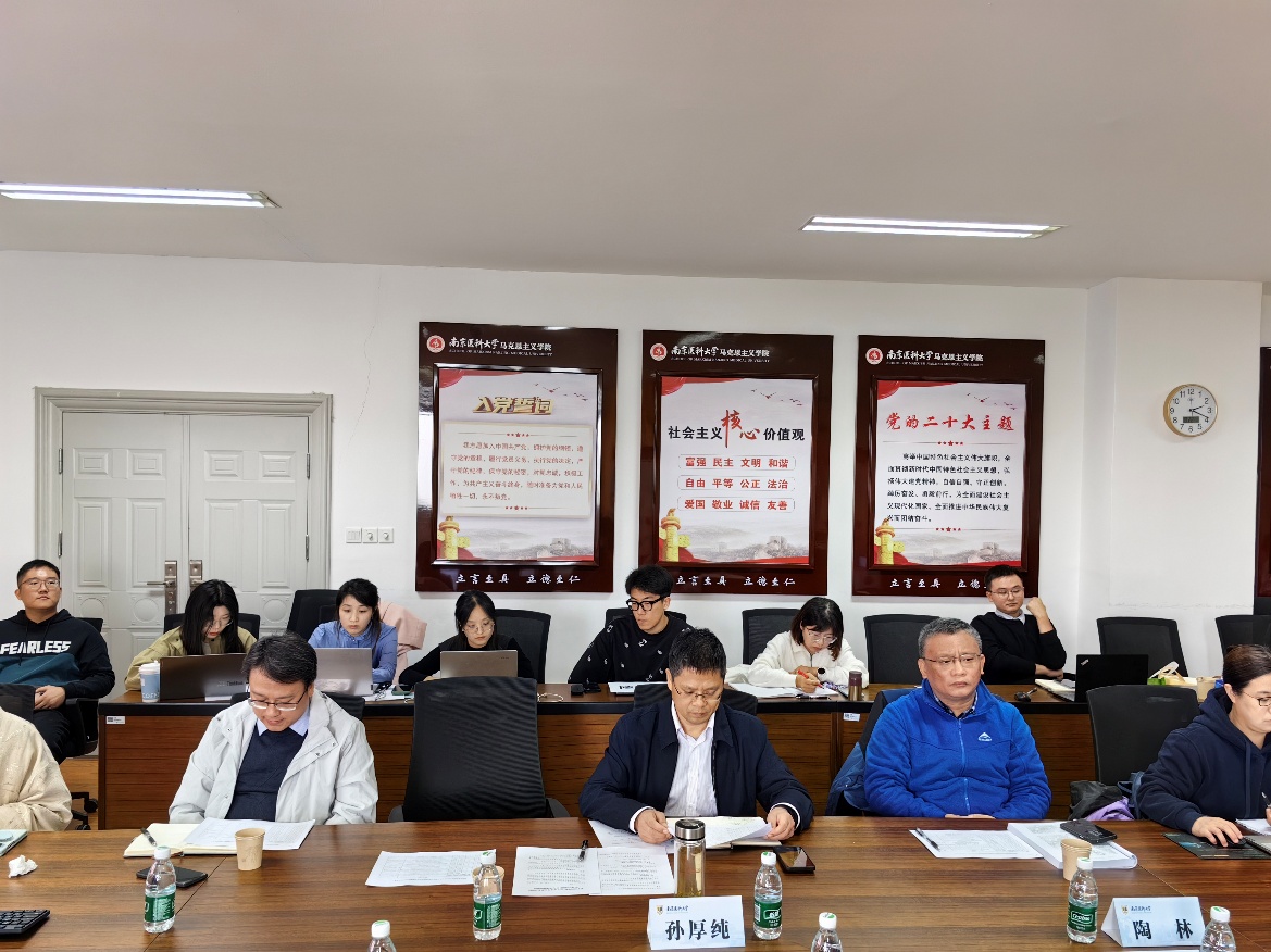 10月21日下午,马克思主义学院组织召开中青年教师科研专项课题评审会。本次评审会特邀南京理工大学马院院长强舸教授、东南大学马院博导孙迎联教授、河海大学朱志梅教授、南京医科大学学科建设与发展规划处处长鲁明教授、医政学院院长钱东福教授等5位校内外专家教授担任评审专家。同时,校学科建设与发展规划处副处长赵妍双以及科研院彭明瑶老师参加评审会,马克思主义学院陶林副院长、申报专项课题的老师和研究生代表30多人参加。会议由马克思主义学院党总支书记孙厚纯主持。