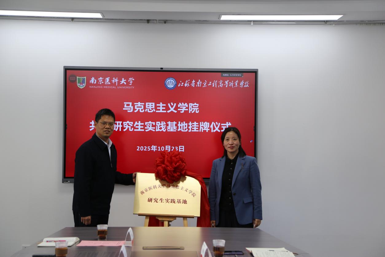 10月23日上午,我校马克思主义学院与南京工程高等职业学校共建研究生实践基地挂牌仪式在南京工程高等职业学校举行。南京工程高等职业学校党委委员、副校长竺兴妹、教务处处长郭星辰、马克思主义学院直属党支部书记周川燕和我校马克思主义学院党总支书记孙厚纯、副院长郭玉宇、副院长陶林等参加,仪式由南京工程高等职业学校马克思主义学院直属党支部书记周川燕主持。
