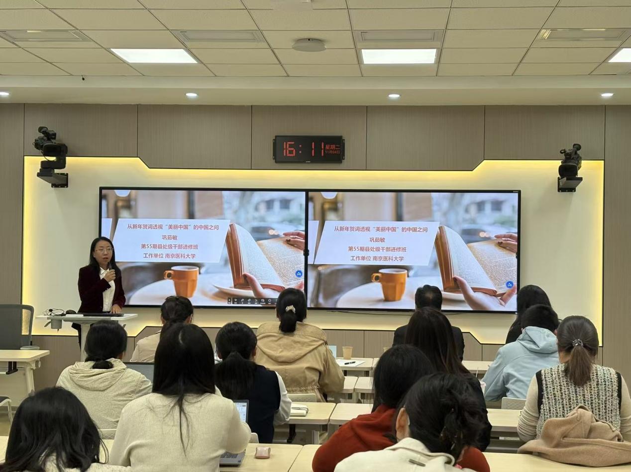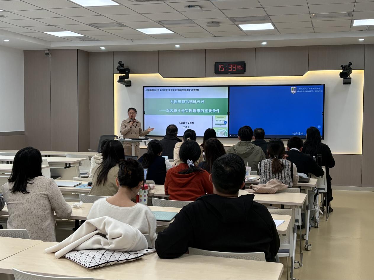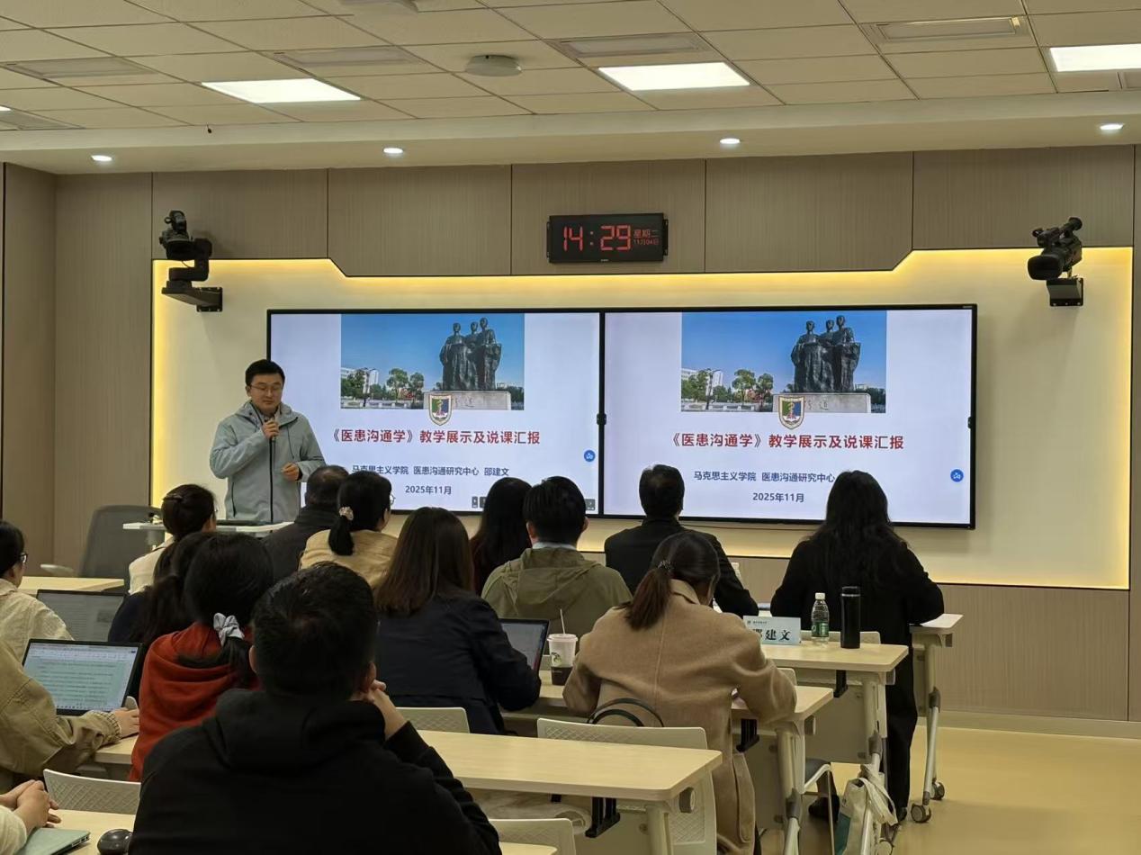 首先,学院三位青年教师代表进行教学展示。邵建文老师以《<医患沟通学>教学展示及说课汇报》为题,从教学模块设计及课堂教学创新等方面进行了系统讲解,展示了如何在课程中融入人文关怀,提升教学效果;徐志萍老师围绕《追求远大理想,坚定崇高信念》的主题,通过邓稼先等典型人物案例,引导学生理解理想信念的精神支撑作用,鼓励青年大学生立大志、明大德;王诗琪老师以《为理想“缺钙”把脉开药——艰苦奋斗是实现理想的重要条件》为题,深入剖析当代大学生奋斗观的现状,并从理论与现实相结合的角度帮助学生树立正确的价值观。