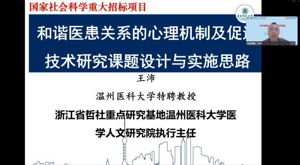为推动医学和医疗服务中人文关怀理念的落地实践,深入探索医患人文类课题研究内容和方法,汇聚学者和临床专家的研究成果与实践经验,11月2日下午,北京协和医学院马克思主义学院人文和社会科学学院、南京医科大学医患沟通研究中心联合举办医患人文类课题研究交流会。本次会议采用线上线下结合的方式,汇聚了来自全国多所医学院校的医患沟通学虚拟教研室成员单位代表及骨干教师。北京协和医学院马克思主义学院人文和社会科学学院常务副院长刘欢出席研讨会并致辞。会议由南京医科大学医患沟通研究中心王锦帆教授主持。